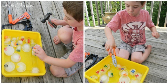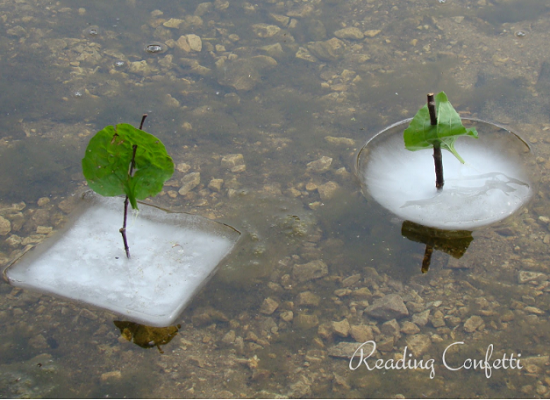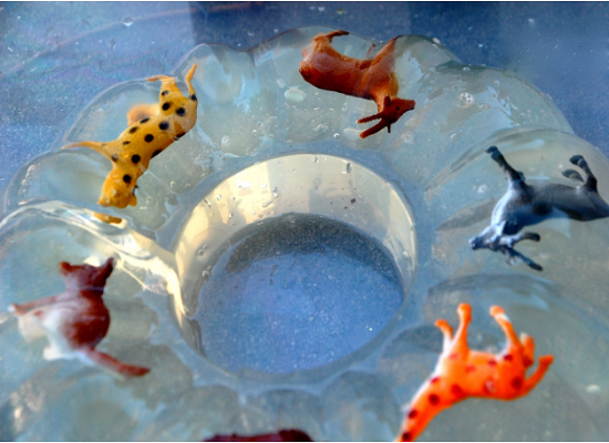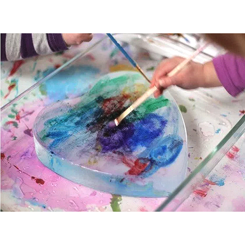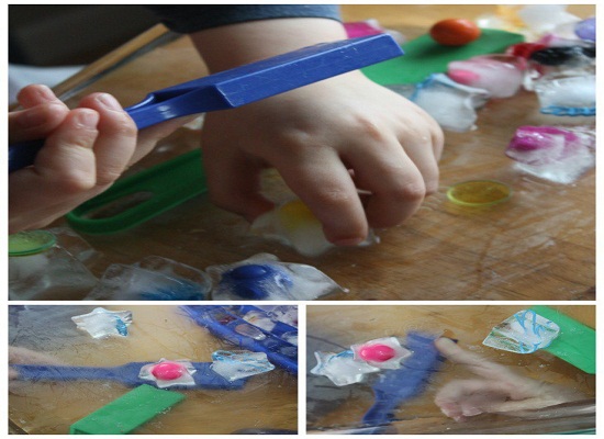 - Một khay để đá cho bé khám phá, cạy các vật được đông trong đá ra.