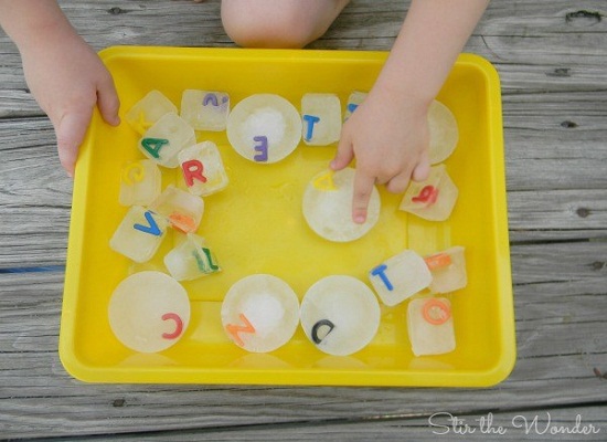 - Cho các chữ cái màu sắc vào ly nước và cho vao ngăn đông thành các viên hay khối tròn