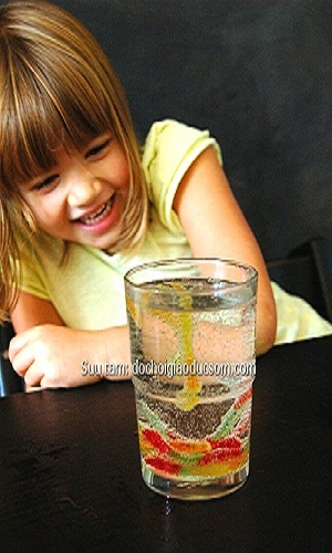 Sau vài phút bé sẽ muốn thêm nhiều hơn mặc dù những con giun đầu tiên vẫn đang nhảy múa. Có những con giun chỉ nằm ở đáy cốc, vì quá nặng nên có những con giun không thể nổi lên . Vì vậy, trong thí nghiệm khoa học này, ít vẫn tốt hơn nhiều, với khoảng 4 con giun là tốt nhất.