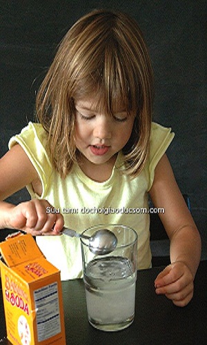Tiếp theo, lấy ra 3 thìa baking soda và khuấy chúng vào một cốc nước ấm đầy . Sau đó trộn sâu vào cùng với nước và soda đã được pha.