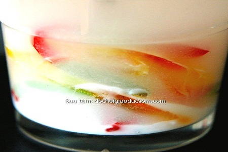 Đầu tiên, bắt đầu với việc đổ nước vào đầy bình, lưu ý nên để thừa một đoạn từ nắp bình. Sau đó, chúng ta đổ xà phòng và dấm vào và đóng nắp lại.