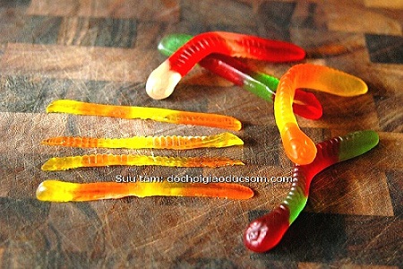 Đến lúc những chú sâu chuẩn bị nhảy múa, bé sẽ chạy đến con giun và cẩn thận chạm vào chúng bằng một cái dĩa. Chúng ta bắt đầu bằng cách chỉ đặt một vài con giun trong dấm và ngay lập tức chúng sẽ bắt đầu sủi bọt. Sau vài giây, những con giun sẽ được bọc trong bong bóng và chúng bắt đầu nổi lên từ đáy, quằn quại lên bề mặt.