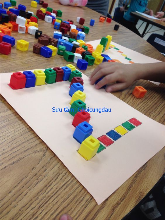 - Đầu tiên, hướng dẫn trẻ đặt từng khối magic block trực tiếp lên thẻ theo màu tương ứng