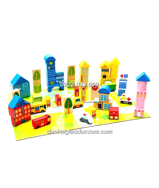 Bộ khối gỗ xếp mô hình thành phố – kèm nền thành phố