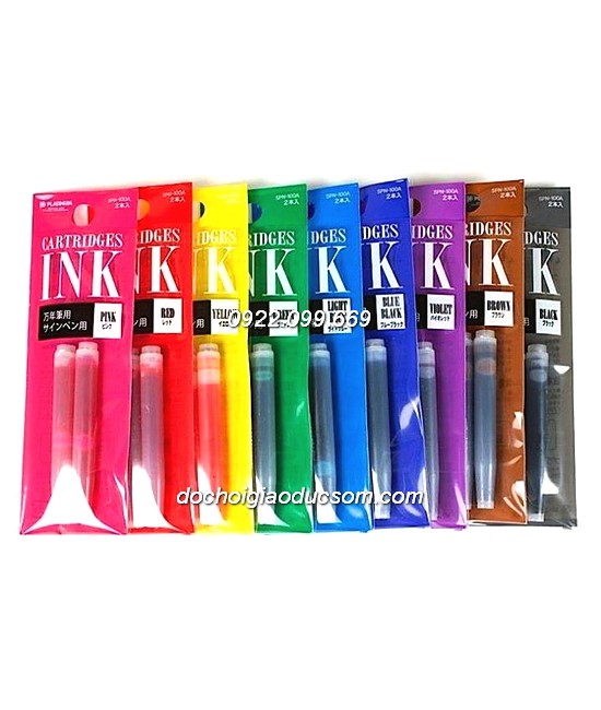 - Mỗi bút bán ra có sẵn 1 ống mực Nhật Bản chính hãng đi kèm cùng màu với màu thân bút. Ngoài ra có thể mua thêm ống bơm mực để bơm mực trực tiếp từ lọ mực.