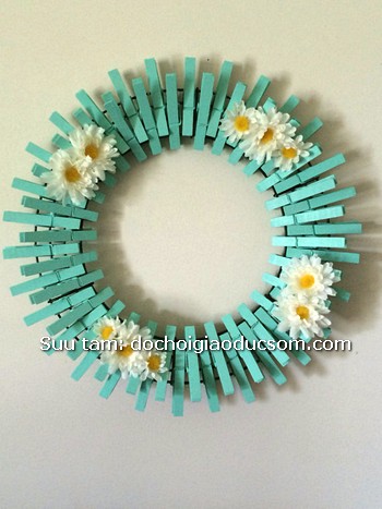 Lấy kẹo gỗ kẹp quanh giấy vòng tròn, sau đó đính hoa lên kẹp