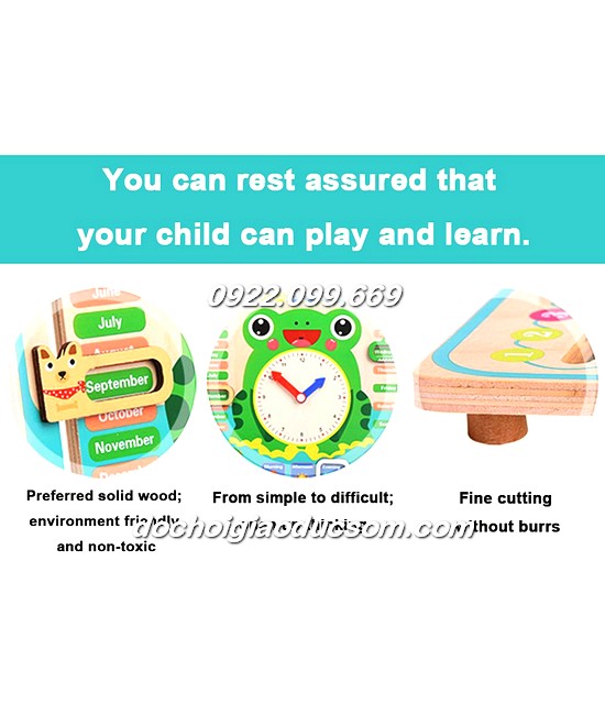 + Kết hợp các thanh khung gỗ/ kim mũi tên có thể di chuyển để trẻ tự tay điều khiển và lựa chọn đặt vào ô thông tin chính xác nhất.