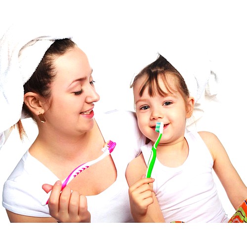 Nếu muốn con chịu vệ sinh răng miệng thì mẹ phải nêu gương tốt cho con noi theo. Hãy để bé nhìn bạn đánh răng thường xuyên và chỉ cho bé răng miệng bạn thơm tho và trắng tinh nhờ chăm sóc răng miệng như thế nào.