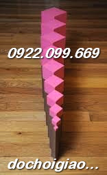 Bộ giáo cụ montessori – thang nâu gồm 10 thanh gỗ có chiều dài giống nhau, nhưng chiều rộng và độ cao tăng dần.