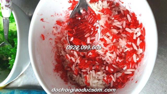 Để làm GẠO CẦU VỒNG thành công, các mẹ có thể dùng mầu thực phẩm nước đậm đặc mà dochoigiaoducsom.com cung cấp nhé!
